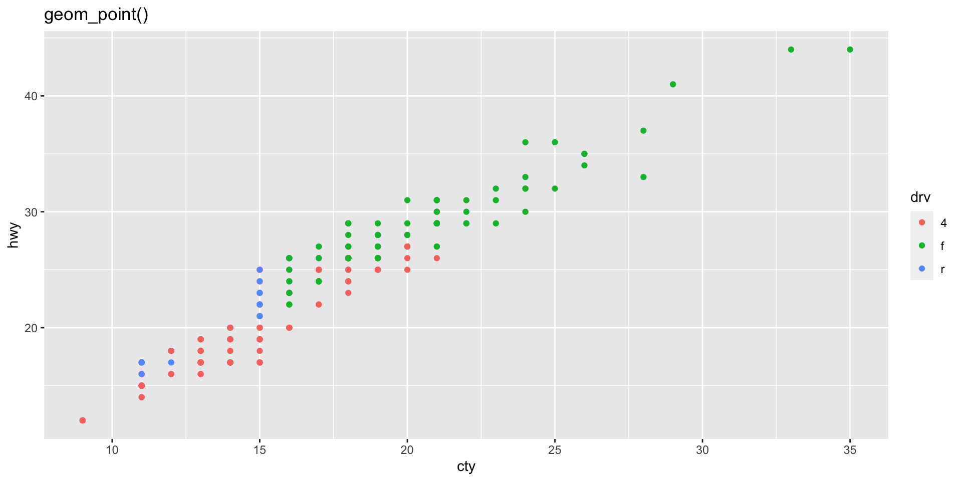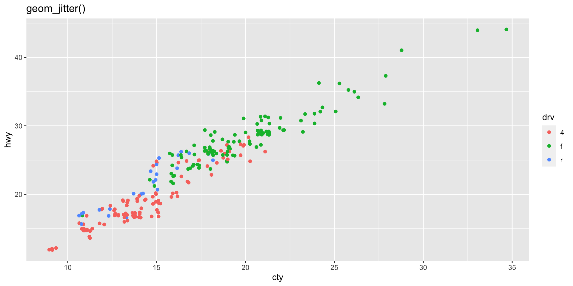 geom_jitter() vs. geom_point()The same dataset is plotted with geom_jitter() and geom_point() below. Why do the two plots look different?