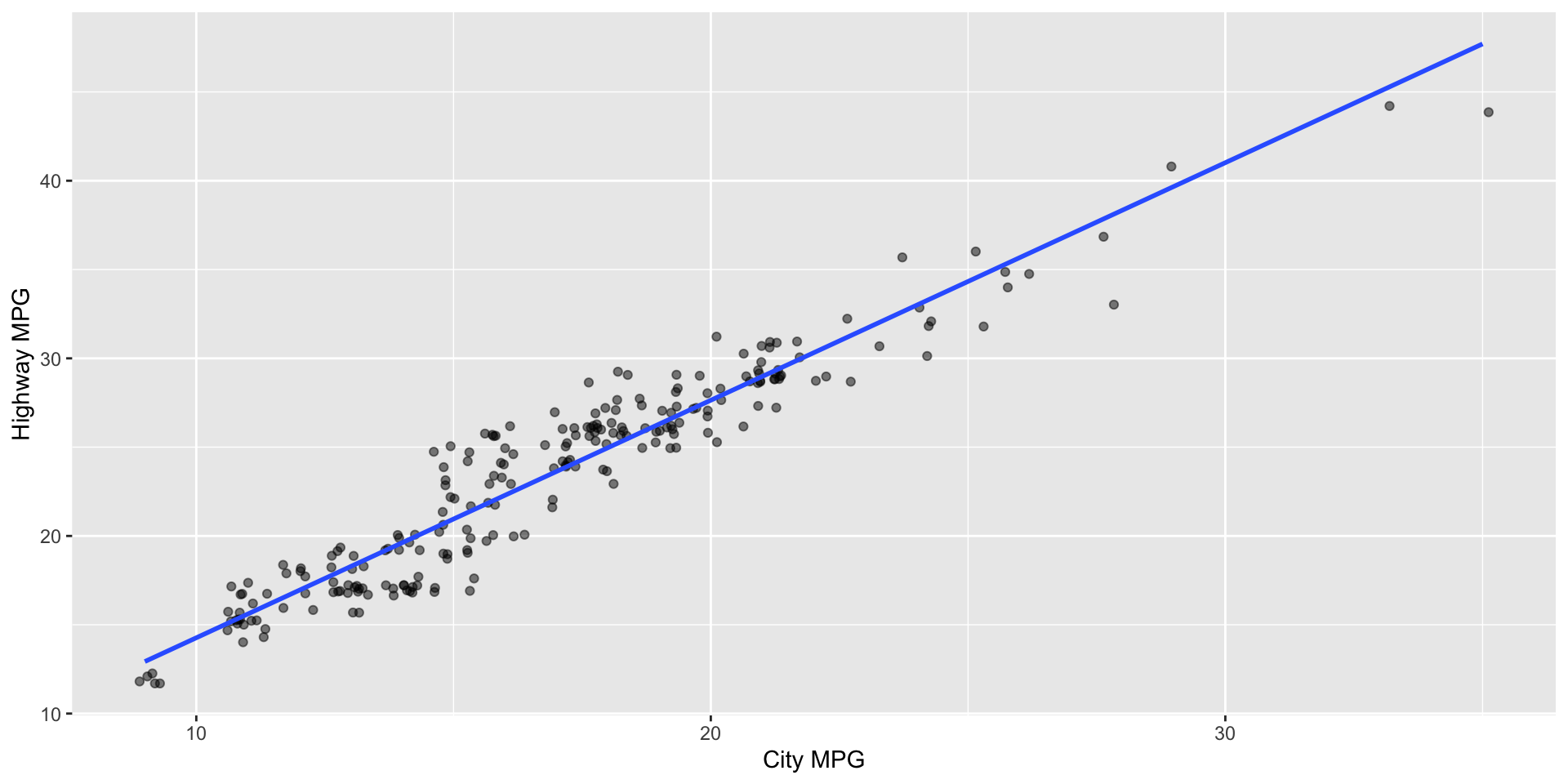 %in% vs ==%in% vs ==|> vs. %>%|>: pipe operator (newer – what we’ve been using in class)%>%: pipe operator (older – what you see in the videos)Provide a 1-2 sentence interpretation of the relationship between city and highway mileage of cars.