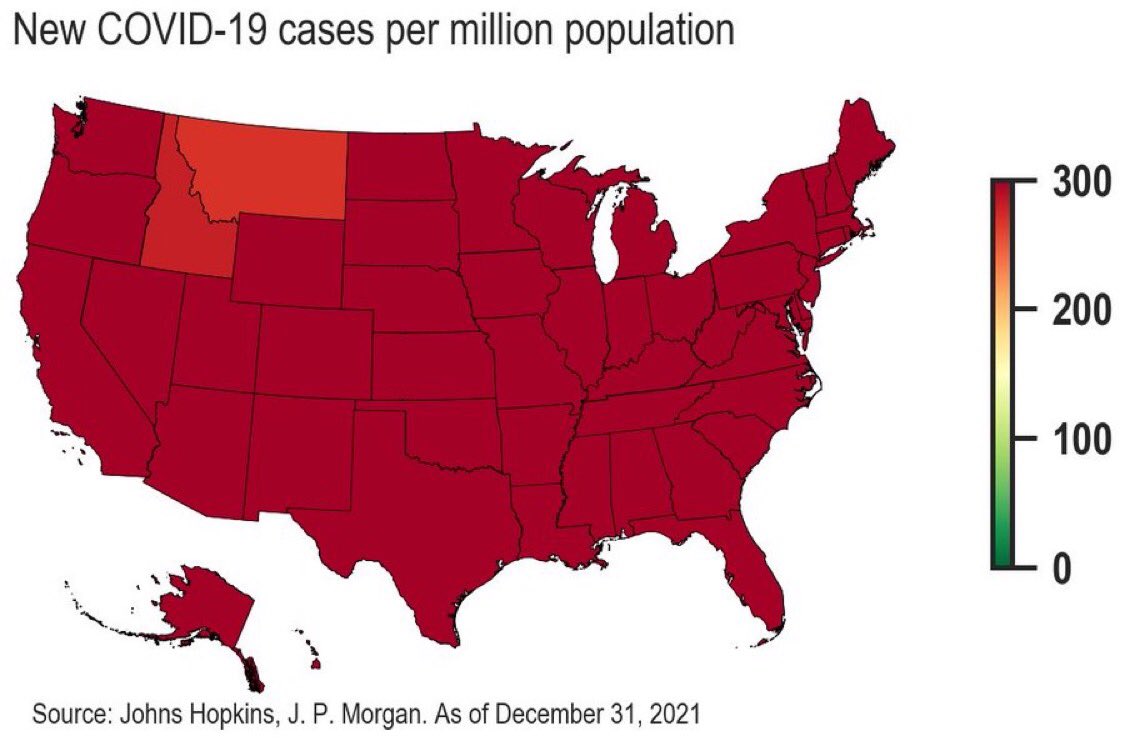 What is misleading about the following two visualizations (from here) that are presented together to show the trajectory of COVID?