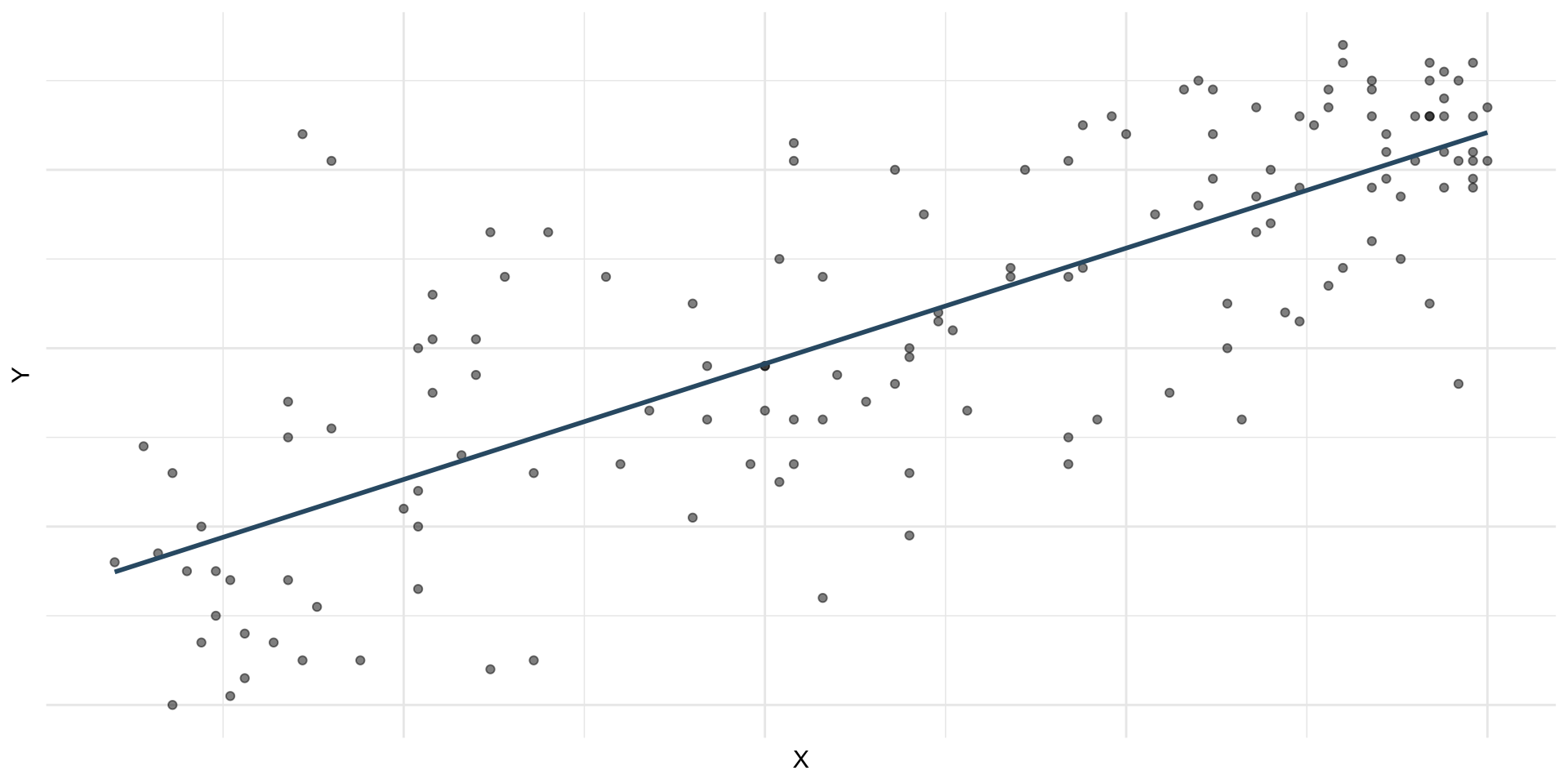 Use simple linear regression to model the relationthip between a quantitative outcome (\(Y\)) and a single quantitative predictor (\(X\)): \[\Large{Y = \beta_0 + \beta_1 X + \epsilon}\]
